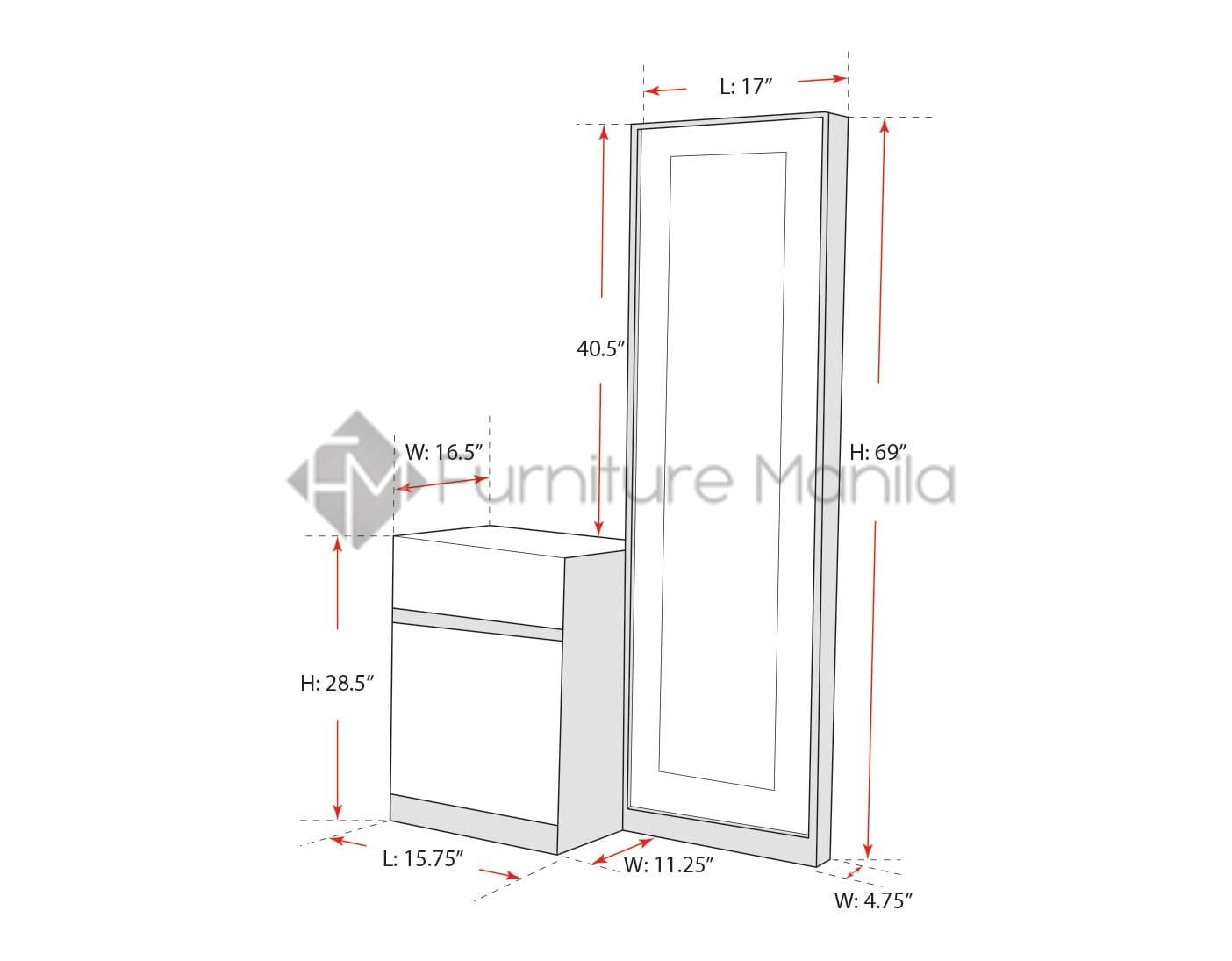 - Body Mirror with Small Cabinet (1 Drawer and 1 Door)