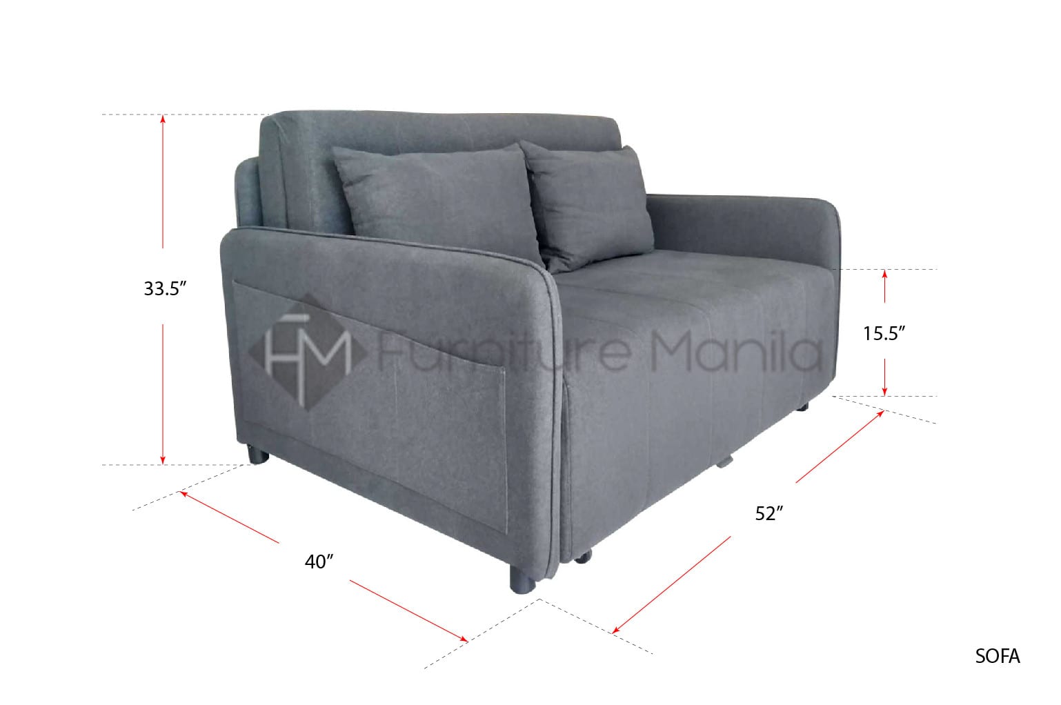 The sofabed is just what we needed! For a condo unit with limited space, this multifunction furniture is without a doubt a very good find! The sofa has enough seating capacity for 2 people, bed is long enough for people to sleep on, and the storage is spacious too!