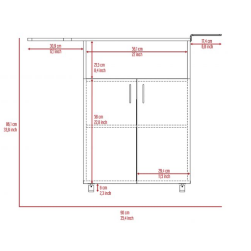 Dimensions: 33.8″H x 35.4″W x 12.7″D