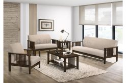 I rated it just a 3. The wood finish is a bit rough to touch with some visible pores on the surface. It would have been nice if it was shiny and smooth. The 1-seater’s back cushion (upper right side) was dented but it’s okay. I could have it returned but not much of an issue for me. The delivery guys must’ve stacked something on it causing the dent. As for comfort, it is a bit too hard. Perhaps, because it is still new? No worries, I’ll get used to it. I very much like the design, sofa fabric, and sturdiness, though.