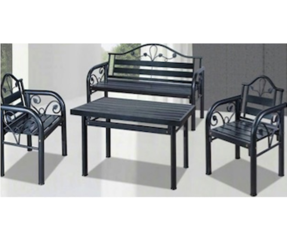 Set includes: 1pc Long Bench; 2pcs Single Chair, 1pc Table