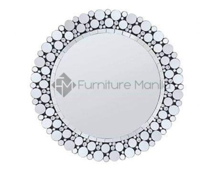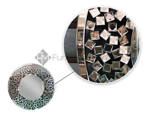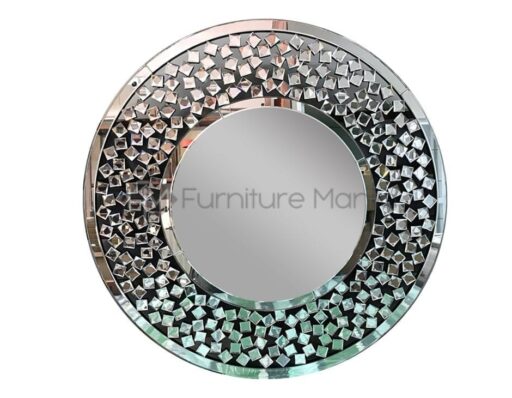 Add a touch of elegance and brilliance to your home with this eye-catching decorative wall mirror. Featuring a generous 39.5-inch diameter and a dazzling mosaic-style frame, this mirror not only reflects light but also enhances the aesthetic of any room. The intricate bevel-cut glass pieces around the edge catch light beautifully, creating a luxe, dimensional look.