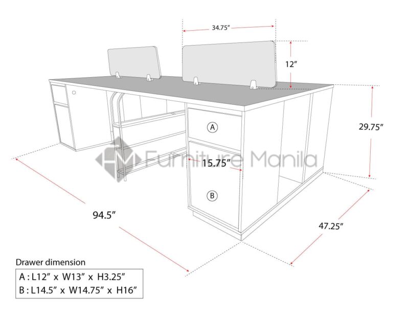 - Dimension: L94.5″ x W47.25″ x H29.75″