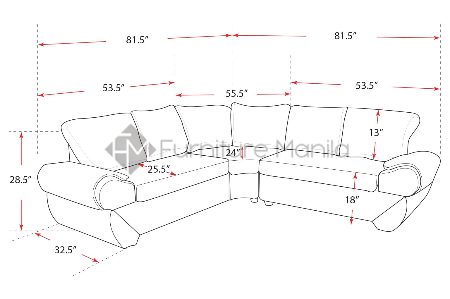 - Sofa dimension: L81.5″ x W81.5″ x H28.5″