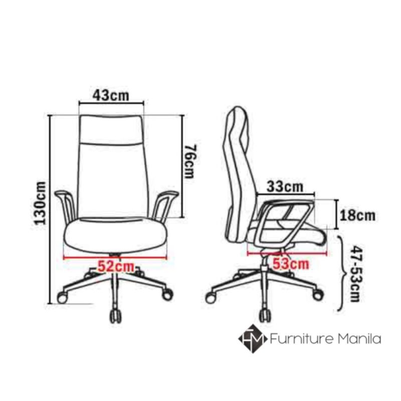 - Seat width: 52 cm