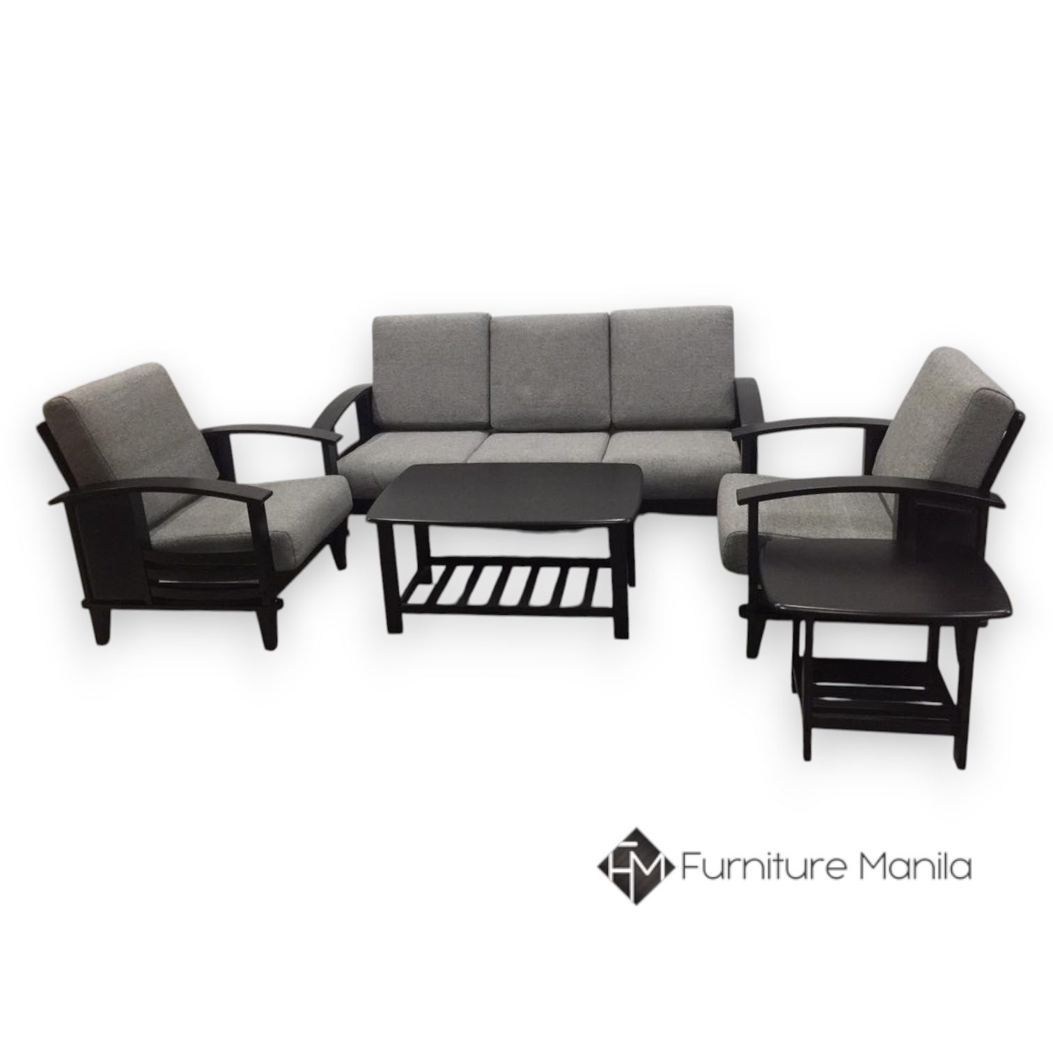 Arden Solid Wood 3-1-1 Sofa Set — Gray