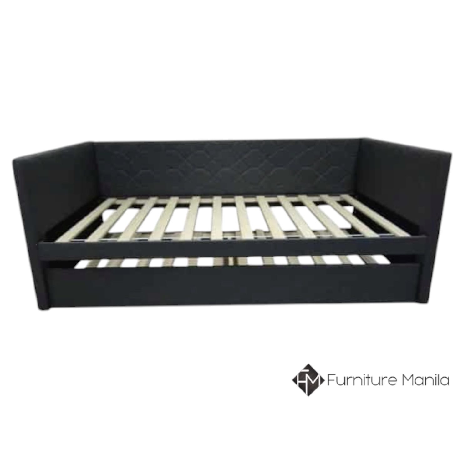 Maximize space with the Arlo Pull-Out Daybed. This upholstered daybed features a smooth gliding trundle that rolls out in seconds for an instant extra bed. Quilted side panels, sturdy slat support, and a modern dark gray finish make it perfect for guest rooms, condos, and kids’ rooms.