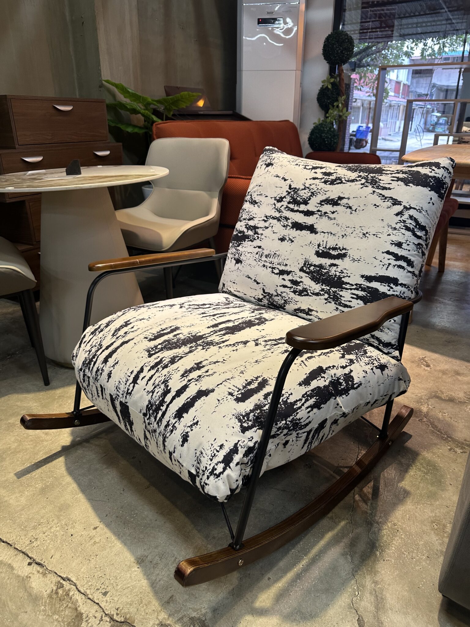 The Aspen Rocking Chair is the perfect blend of comfort and contemporary design. With its eye-catching patterned upholstery, cushioned seat, and supportive backrest, this chair invites you to unwind after a long day. The durable metal frame ensures stability, while the curved wooden rockers provide a smooth and gentle rocking motion. The wooden armrests add a touch of warmth, making it both stylish and functional.