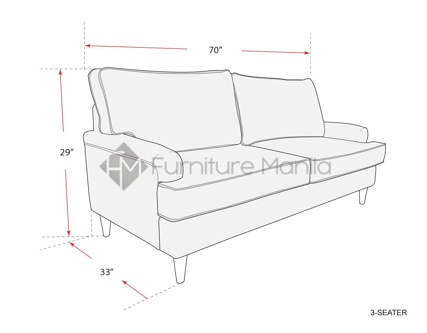 - 3-Seater Dimension: L70″ x W33″ x H29″
