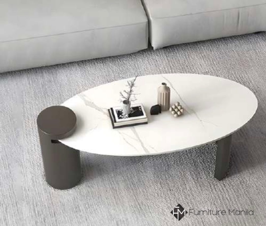 The Cabe Sintered Stone Coffee Table brings modern elegance into your home with its oval white stone top and unique sculptural base. Designed with durability and style in mind, it’s the perfect centerpiece for your living room.