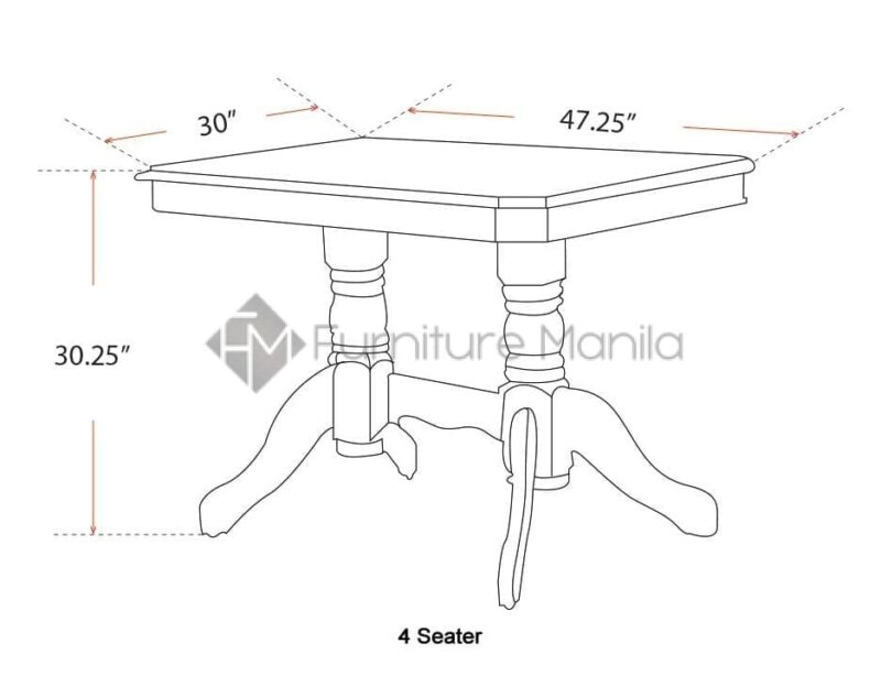 4-Seater Table: L47.25″ x W30″ x H30.25 - Set includes: