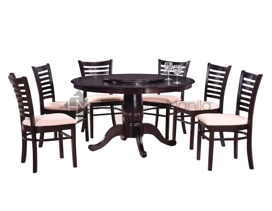 - Set includes: 1 Table with Lazy Susan + 6 Chairs