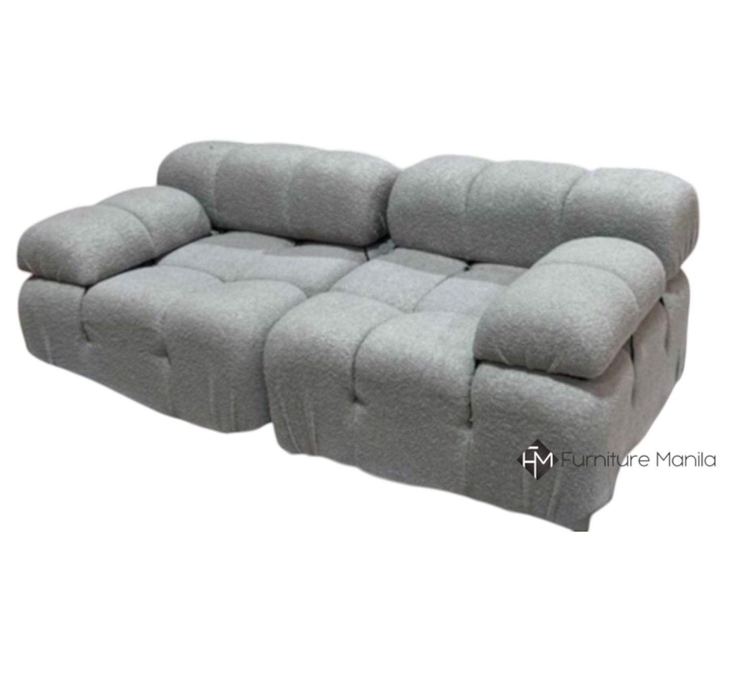 Cloud Sofa – 2-Seater in Bouclé-Like Fabric Sink into softness with this ultra-cozy 2-seater Cloud Sofa, wrapped in textured bouclé-like fabric and designed for modern comfort. Delivered compressed in a compact box for easy transport, it fully expands within 24 hours to reveal deep tufting, oversized cushions, and a sleek low-profile silhouette—perfect for condos, lounge areas, or minimalist homes.
