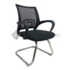 Visitors chair with armrest, adjustable gaslift, mesh black back and fabric seat, and sled-type chrome base. 3 months warranty on parts. Made in China.