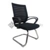 Visitors chair with armrest, adjustable gaslift, mesh black back and fabric seat, and sled-type chrome base. 3 months warranty on parts. Made in China.