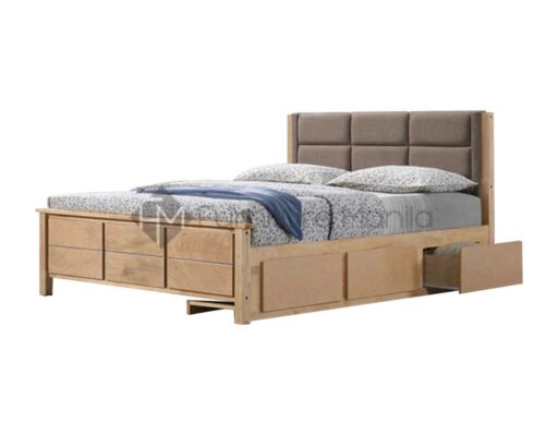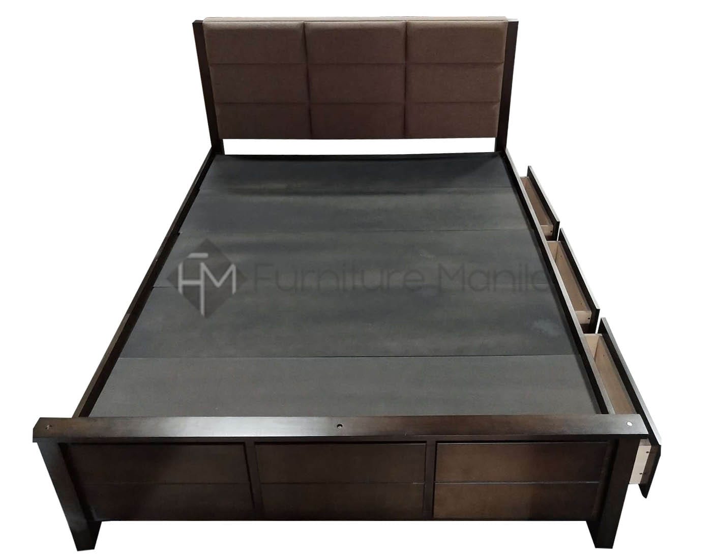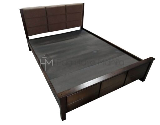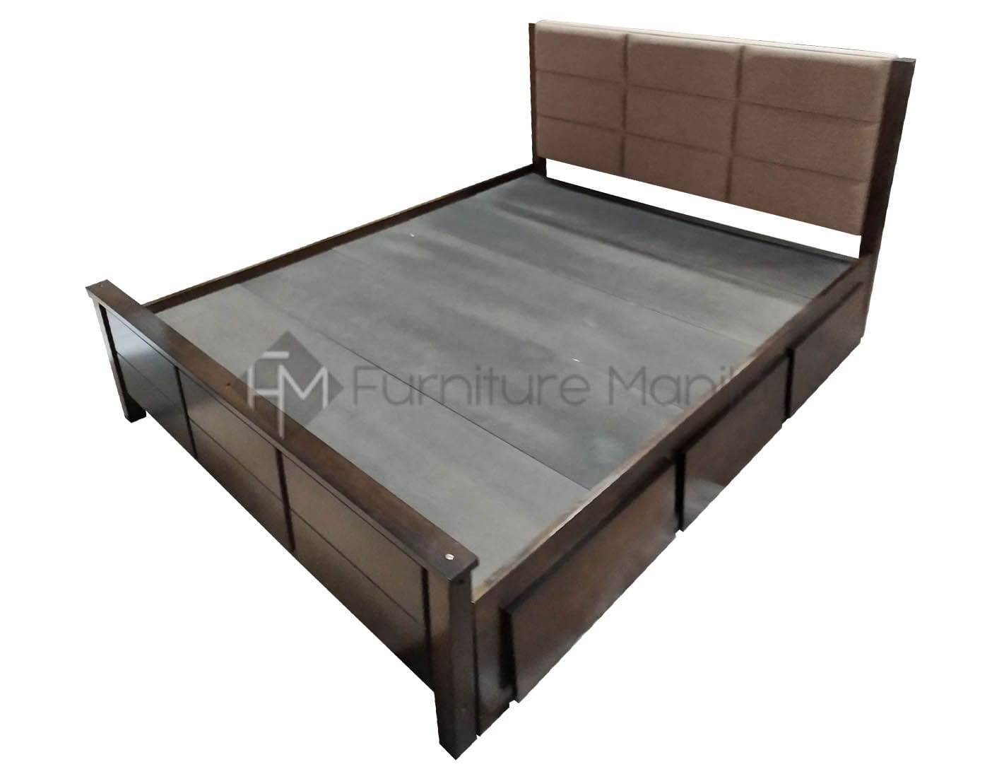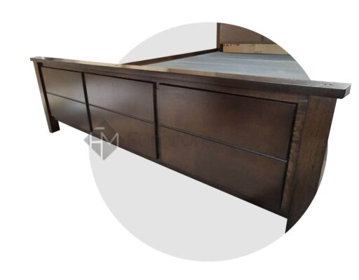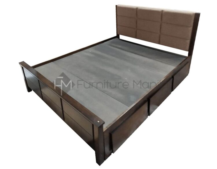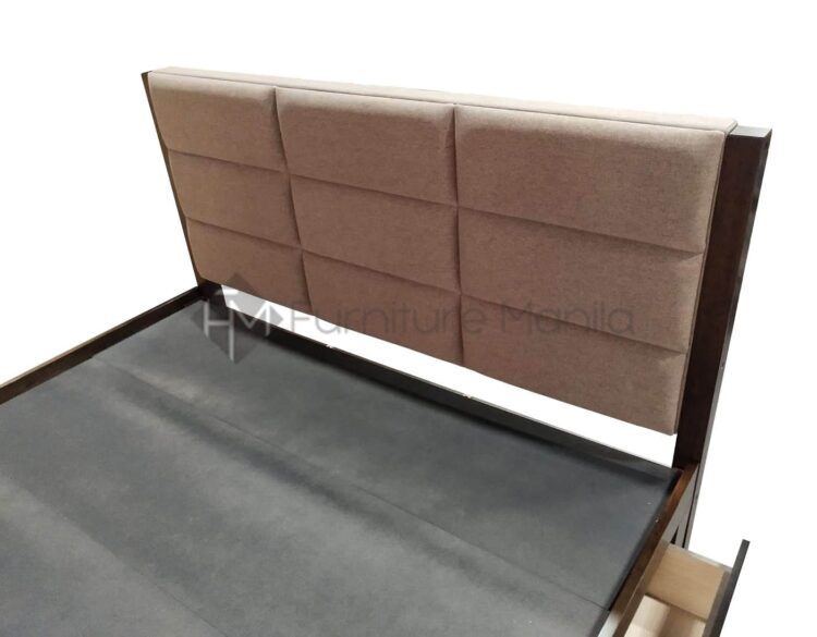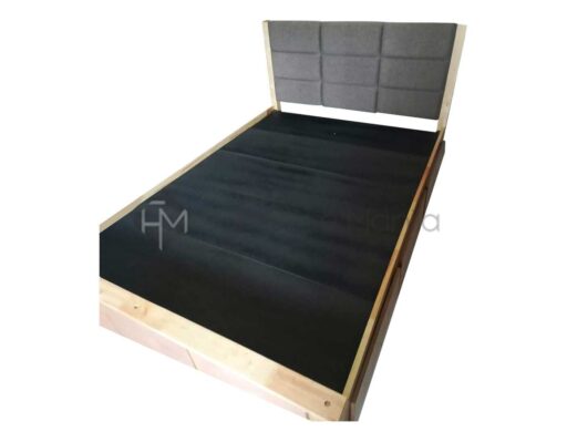 - Material: Fabric Cushion without button, Bed Post 55mm, Footboard top cap with curve, drawer attach with Side Rail 20 x 230 mm (with 3 drawer), Side Rail Cleat 20 x 25 mm, another Side Rail 20 x 140 mm 2pcs vertical center support, 3pcs support leg for center support, 9mm MDF Board for bed base panel