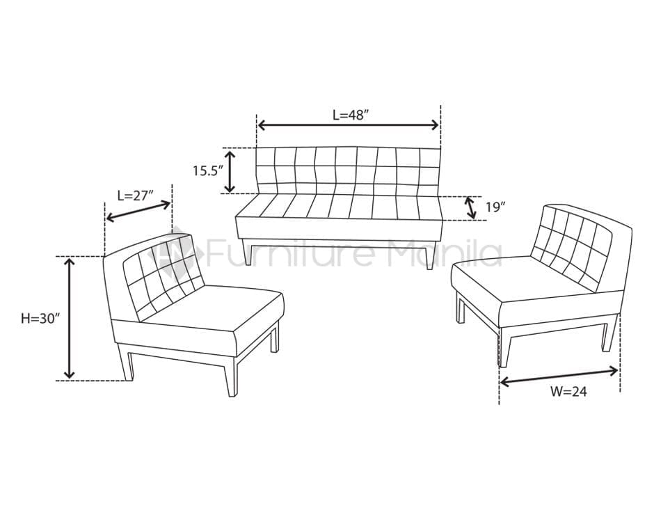 - Sofa dimension: 2-Seater: L48″ x W24″ x H30″