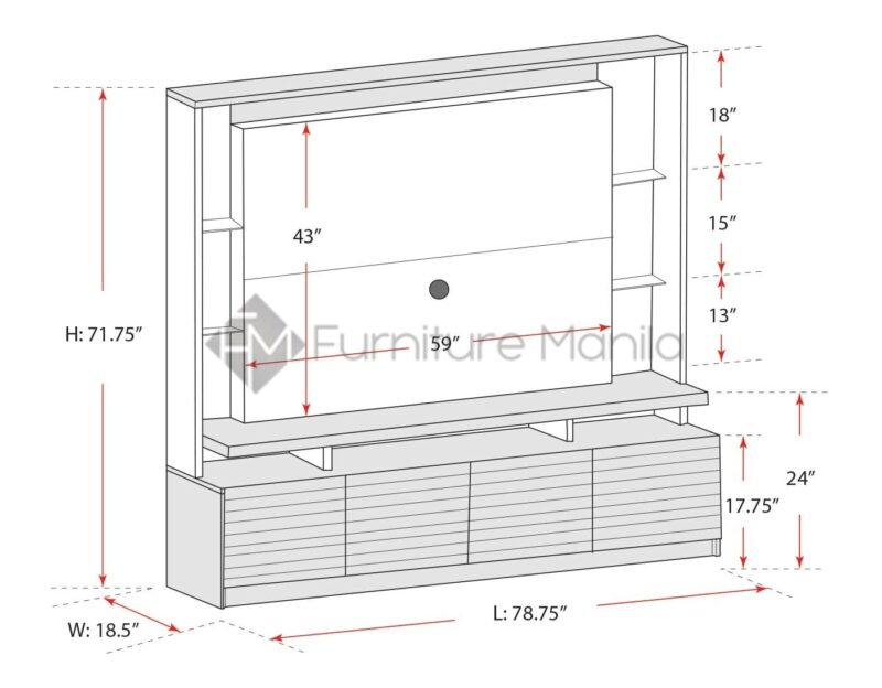 • Dimension: L78.75″ x W18.5″ x H71.75″