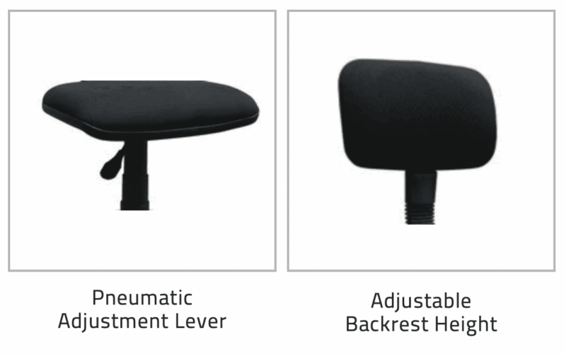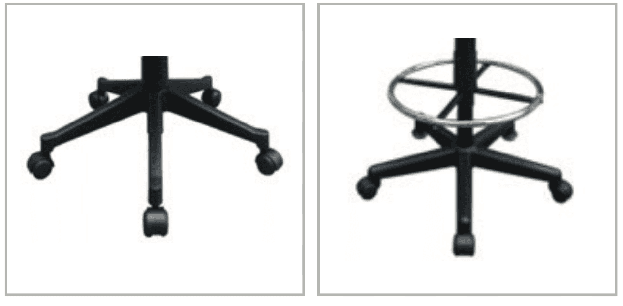 Tellers chair with adjustable gaslift in foot rings, with PU base and 3 castor wheels and 2 gliders.
