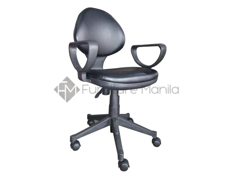 Staff Chair with armrest, adjustable gaslift, with nylon base and castor wheels.
