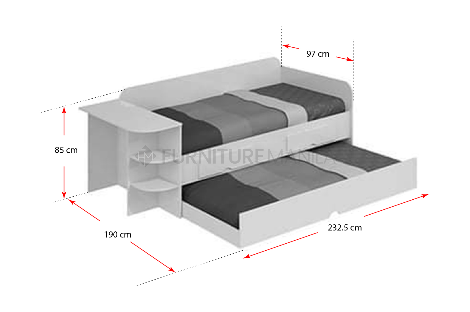 Dimension: W97 x D232.50 x H85cm