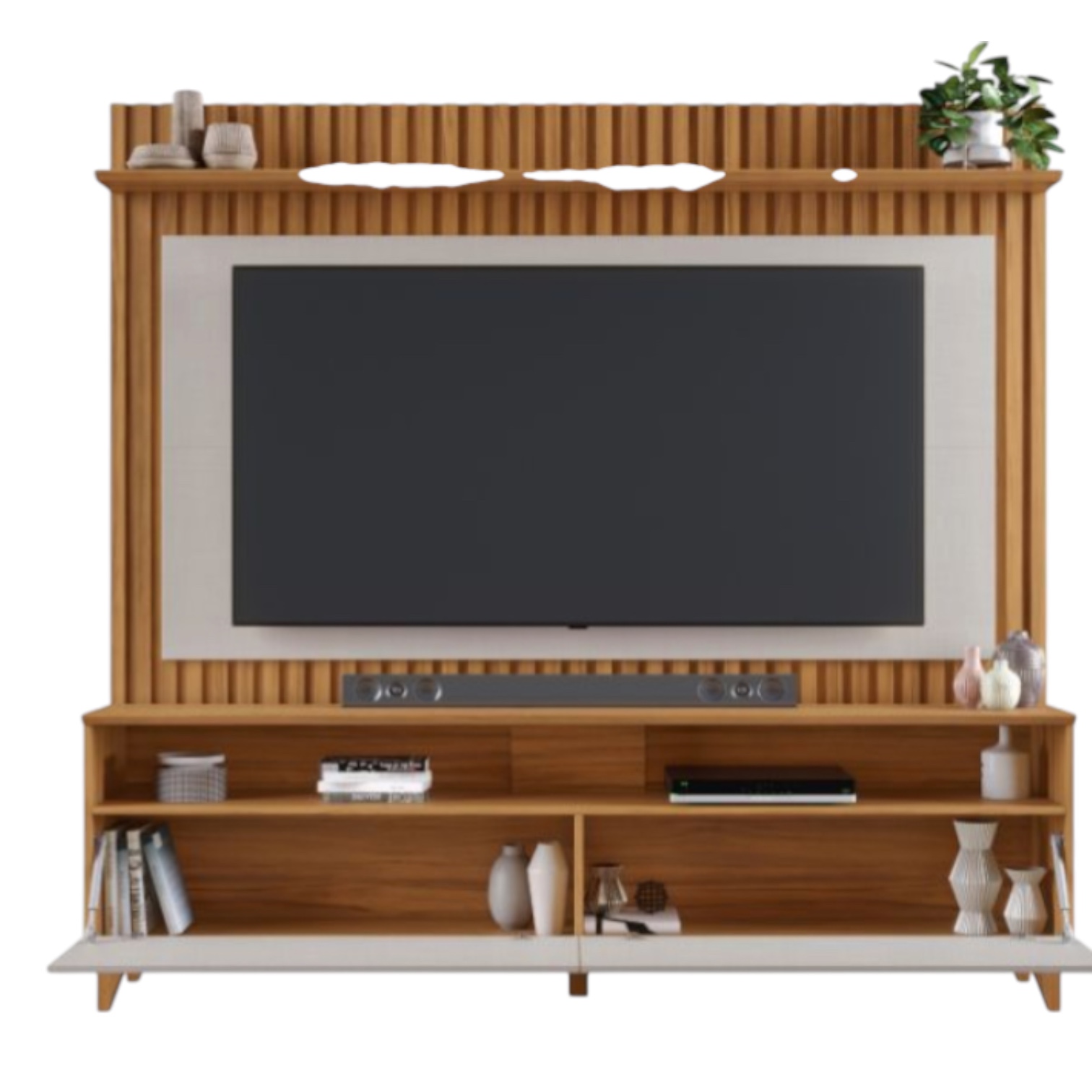 - Wide console surface for soundbar, décor, and daily essentials
