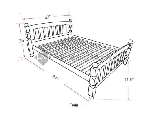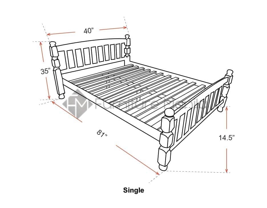 Twin: L81″ x W52″ x H35″ Footboard H14.5″ - Made in Malaysia