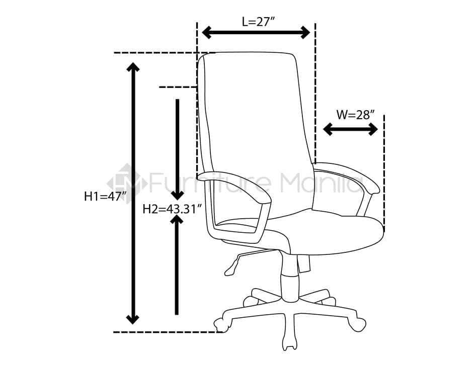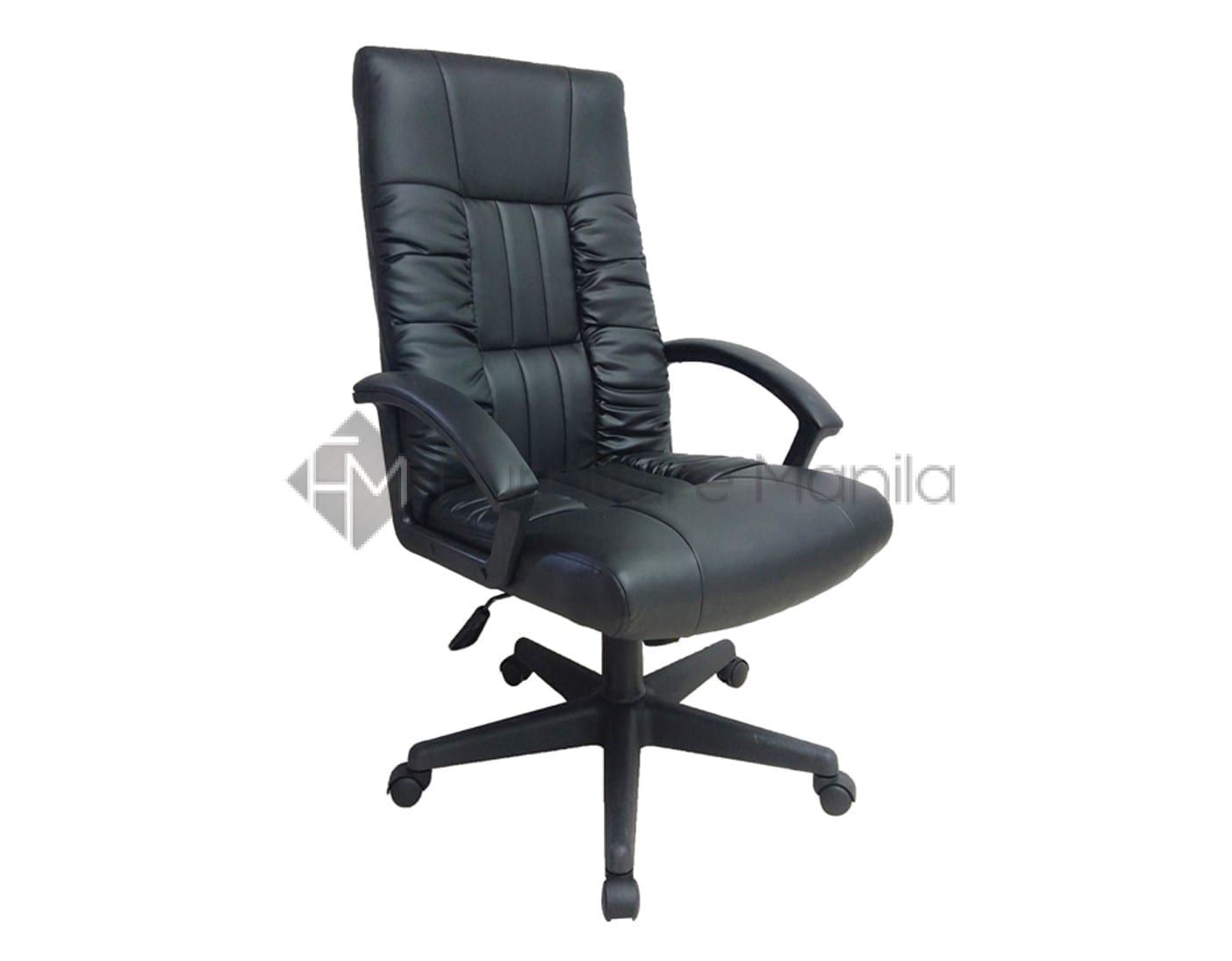 Highback chair with armrest, adjustable gaslift, PU Black back and seat, and PVC starbase with castors wheels.