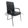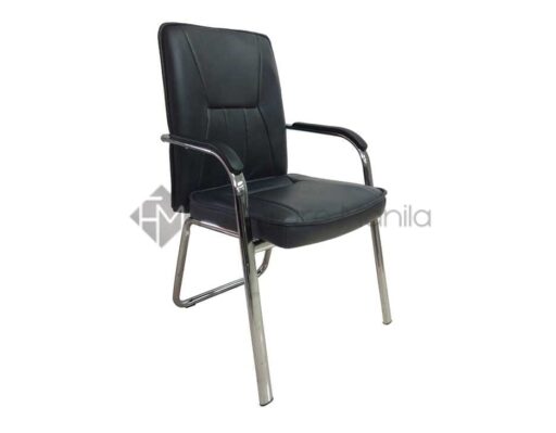 Midback chair with armrest, adjustable gaslift, PU Black back and seat, and three-legged chrome base. 6 months warranty on parts.