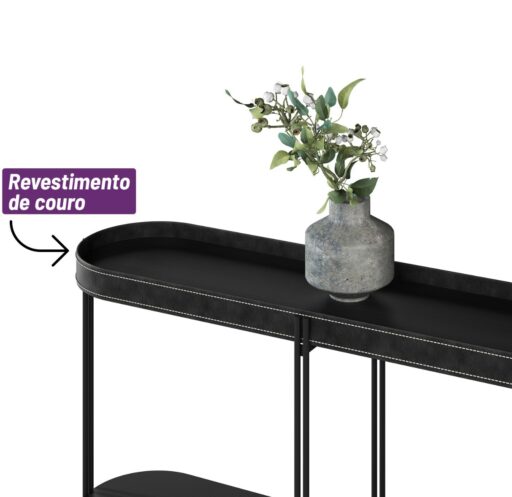 Modernity is the attribute that defines the Monaco sideboard. Its steel structure, rounded top, eco-leather finish and exposed stitching make the space even more charming.