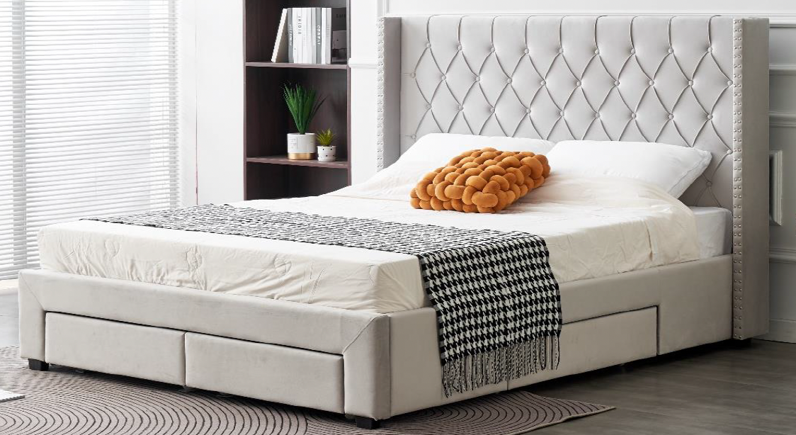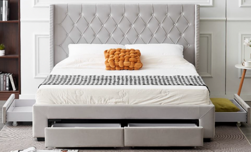 Nari Tall Headboard Bed Frame with Storage