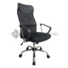 Highback Chair with armrest, adjustable gaslift, PVC-mesh combination back and seat rest, and chrome starbase with castor wheels.