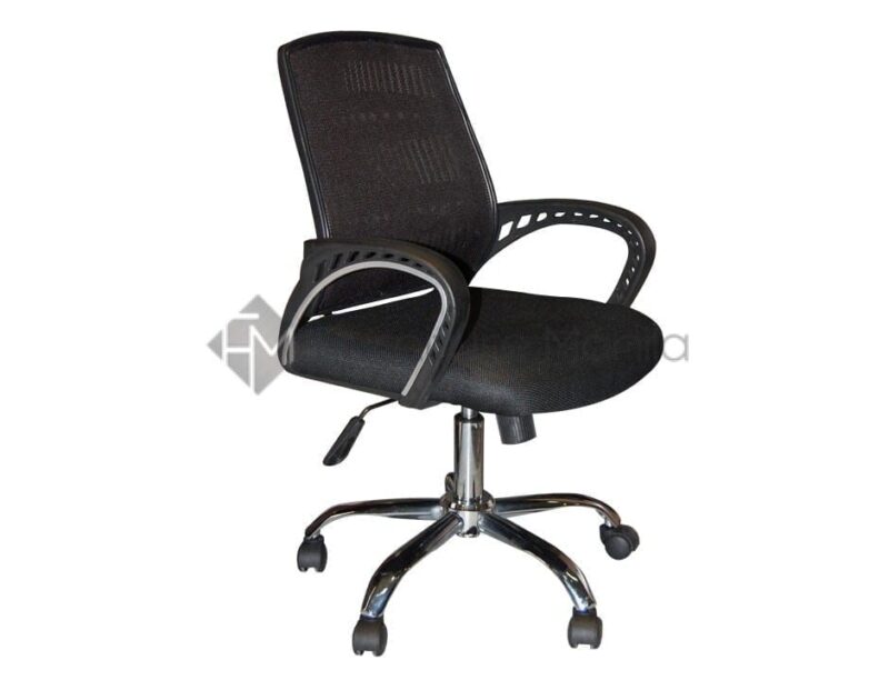 Midback Chair with armrest, adjustable gaslift, mesh back and fabric seat rest, and chrome starbase with castor wheels.