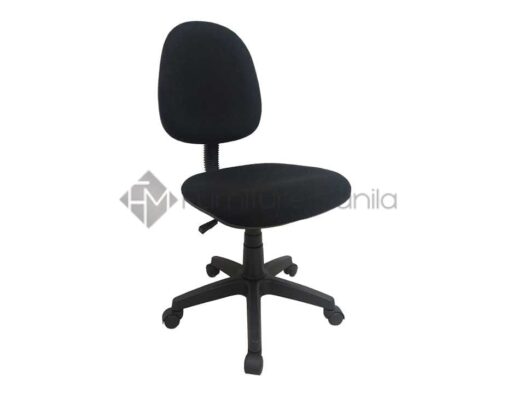 Staff Chair without armrest and with adjustable gaslift, fabric back and seat, and PVC starbase with castor wheels. Available in Black