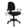 Staff Chair with armrest & with adjustable gaslift, fabric back and seat, and PVC starbase with castor wheels. Available in Black
