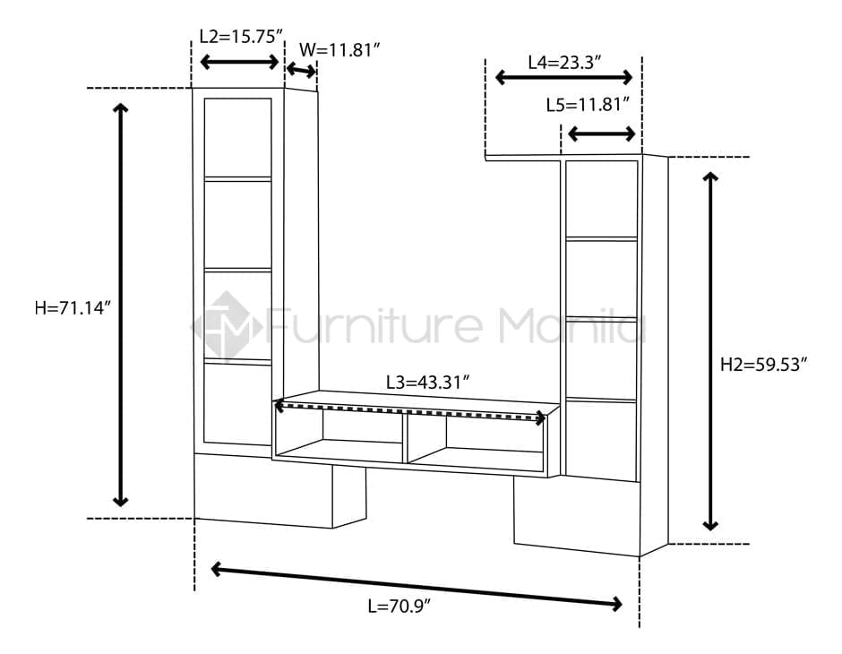 - Dimension: L70.9″ x W11.81″ x H71.14″