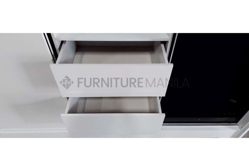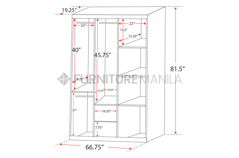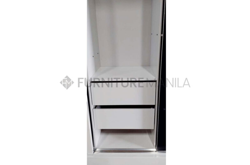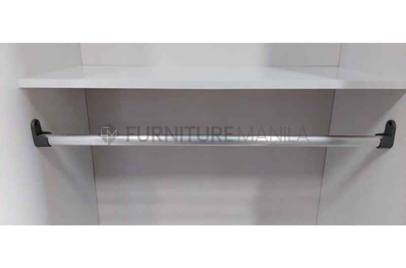 The Vienna Wardrobe stands out for practicality, with a large internal space featuring 2 internal drawers, 3 aluminum coat racks, and 3 shelves for better organization.
