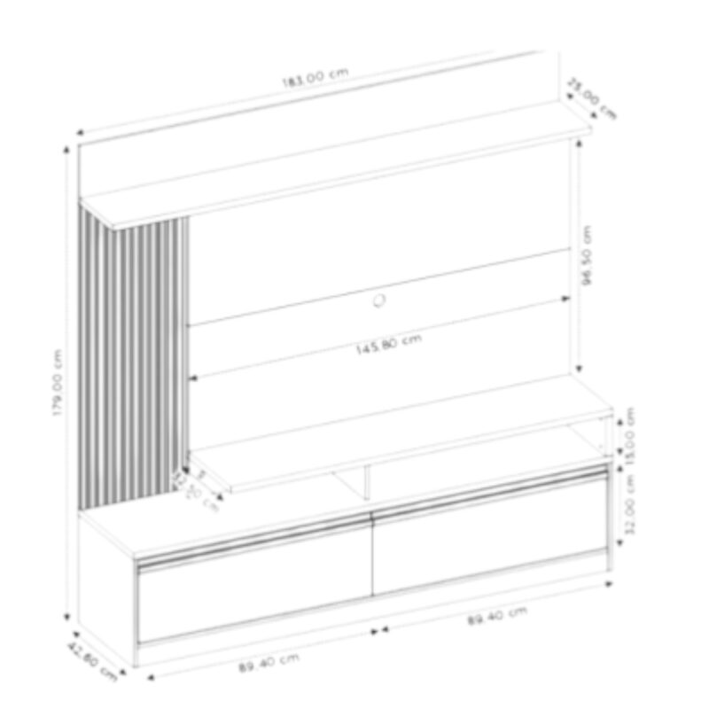 The warm wood finish adds a cozy designer feel, while the offwhite panels keep the overall look bright and modern. Open shelving provides quick access for media players and décor, while the closed storage helps hide items you do not want on display.