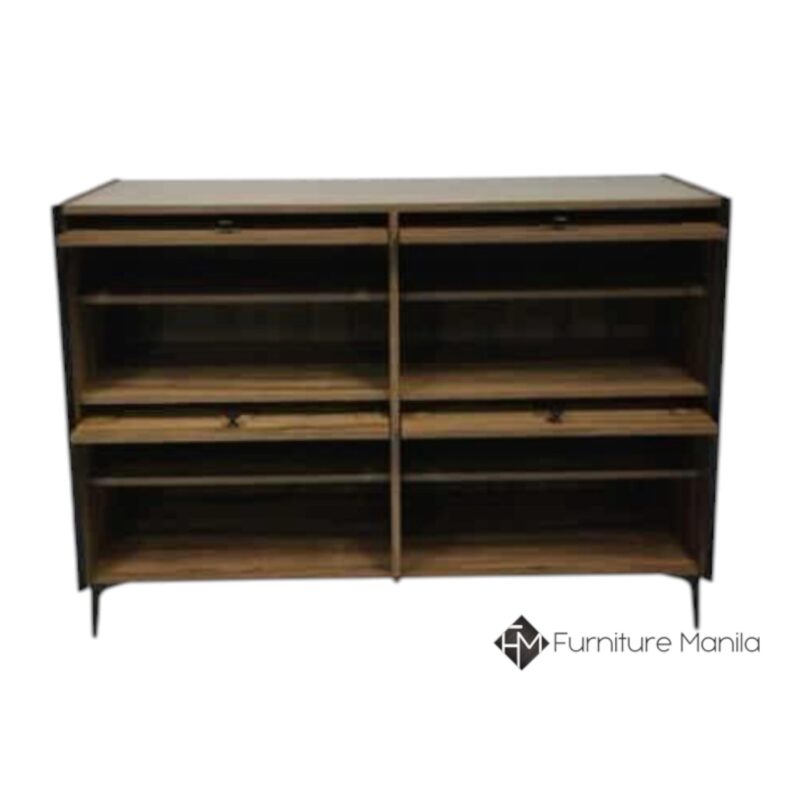 The Walnut Haven 4-Door Louver Shoe Cabinet is your elegant fix for busy entryways. Louvered fronts promote airflow to help reduce trapped moisture, while the flip-down mechanism makes it quick to grab and go. Its walnut wood look blends easily with classic, Japandi, or modern interiors and creates a welcoming first impression.